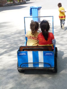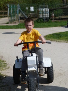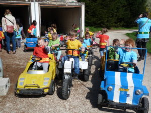 Nous avons ensuite enfilé nos t-shirt de gaulois pour l’atelier ‘pilotes’. Après un petit rappel du code de la route, nous avons enfourché cuistax, vélos, trottinettes, draisiennes… pour arpenter les nombreux chemins qui sillonnent la plaine de jeux… Enfants (et adultes 😀 ) se sont vraiment bien amusés!